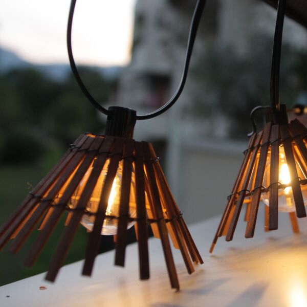 Une guirlande nature par excellence avec son abat-jour tendance en bois.